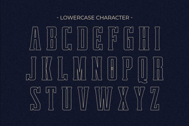 Varsity Holiday Font is a vintage condensed slab serif font inspired by cowboy western style and retro varsity aesthetics. Perfect for bold headlines, sports posters, rodeo events, old west branding, rustic logos, classic signage, whiskey labels, retro apparel designs, western movie titles, vintage packaging, Americana themes, strong editorial layouts, and nostalgic advertising. This typeface comes in Regular and Outline styles, making it versatile for both modern retro projects and authentic vintage designs. Ideal for designers who want a rugged, bold, and timeless slab serif look.