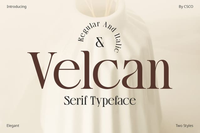 Elevate Your Design Embrace the essence of Velcan to elevate your projects. From editorial layouts to branding, the high-contrast serif brings an air of refinement that resonates with classic elegance.