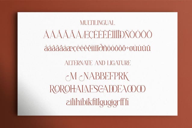 Venatea Font is a serif font that exudes luxury and elegance. It draws attention and enhances any design. It is perfect for invitation card designs, company logos, movie titles, movie names, business cards, book titles, brand names, and many other designs. Venatea Font is an elegant serif font that exudes sophistication and cohesion. Its stylish inflections and ligatures make it a perfect partner for any project.