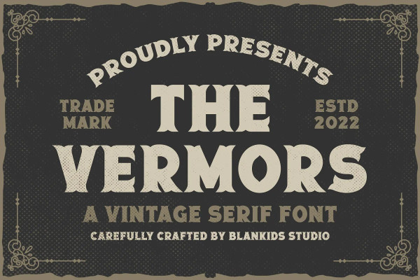 Vermors Font a Vintage Serif Font a Vintage Display Font, Inspiring from vintage style typography. This font is perfect for a design that makes it more attractive and playful. made with a very good level of aesthetics making this font suitable for book cover, poster, packging, merchandise, logotype and much more.