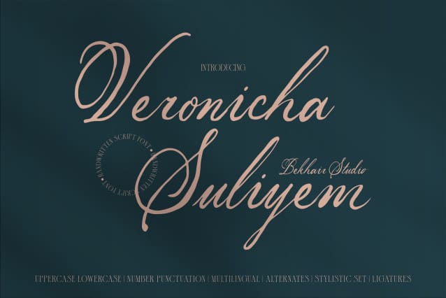 This font is made for personal use. Get the full version of the fonts if you want to use it for commercial purposes by purchasing the licenses here: https://bekhairstudio.com/product/veronicha-suliyem/
