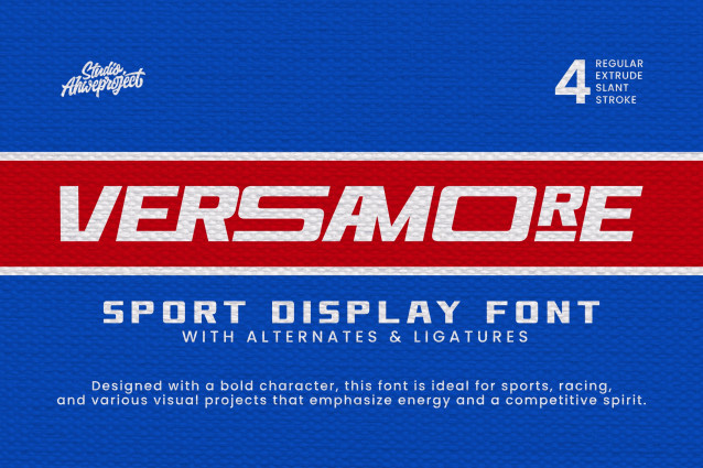 Versamore Font is a modern sport-themed display font designed to bring energy, speed, and competitive spirit into your projects. With its bold, dynamic, and masculine look, this font is perfect for sports branding, racing, esports, and any promotional designs that demand a strong visual impact.