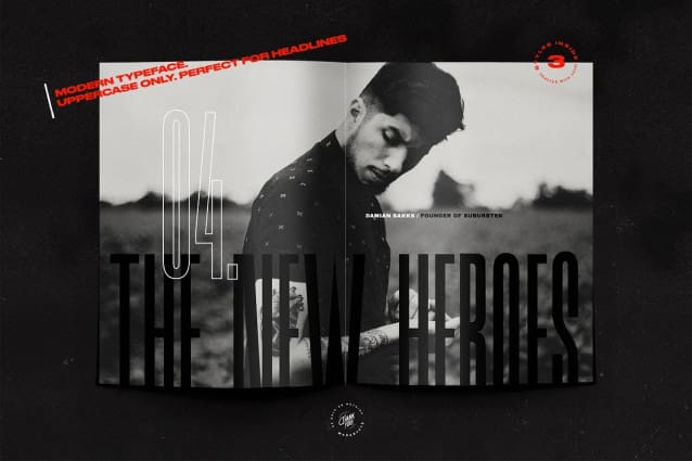 Vertikal Font, a tall condensed sans serif font coming in 3 styles. It’s a memorable, strong and elegant typeface. You can mix and match the Outline and the Regular style to create something very fresh and modern. The Brush Script is the bad boy of the collection but still very classy.