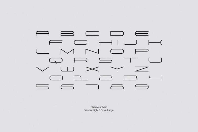 Inspired by unique stylistic elements from the 70s and the 80s, this font system has been designed with the highest attention to detail and its clean and stylized aesthetic is extremely versatile. In fact, simple forms make “Vesper” an iconic display typeface that can be used for any creative work.