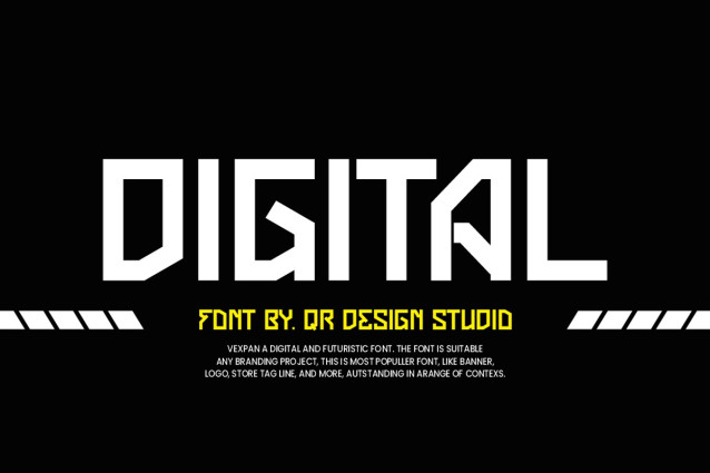 Vexpan Futuristic Font is a digital and authentic display font. The font is suitable for any branding project like poster, logo, techno, and many more. Outstanding in a wide range of contexts.