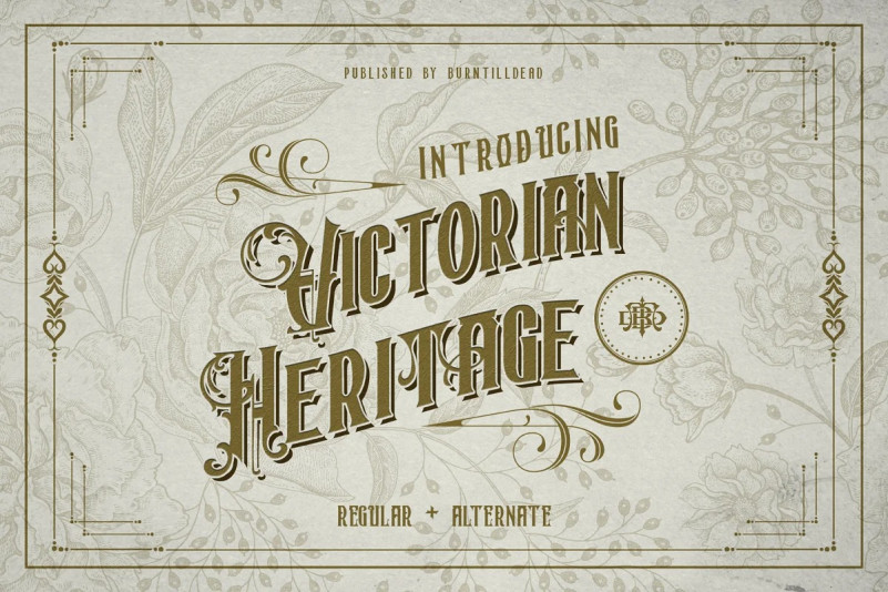 This font is free for personal use only. Purchase the Full Version here: https://creativemarket.com/Burntilldead/10193004-Victorian-Heritage?u=fontlot123
