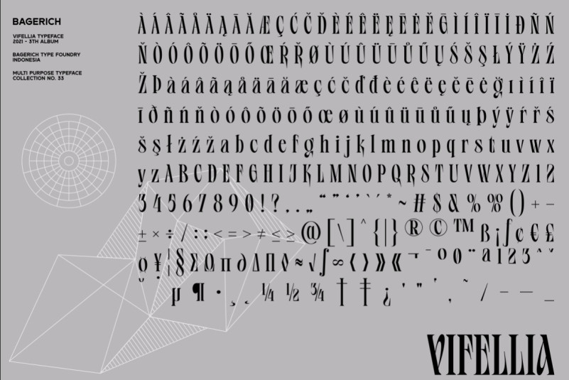 VIFELLIA Serif Font is a versatile and unique serif typeface, a result of half side curved serif and half side straight serif experiment. VIFELLIA has a unique style with stylistic, alternates, ligatures and supports multilingual languages.