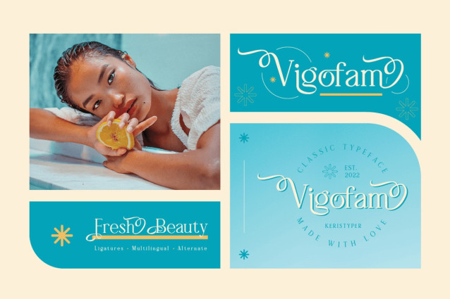 Vigofam serif typeface is an elegantly themed font that has a dynamic serif style. This font is good for logo design, Social media, Movie Titles, Books Titles, short text even long text letters, and good for your secondary text font with sans or serif.
