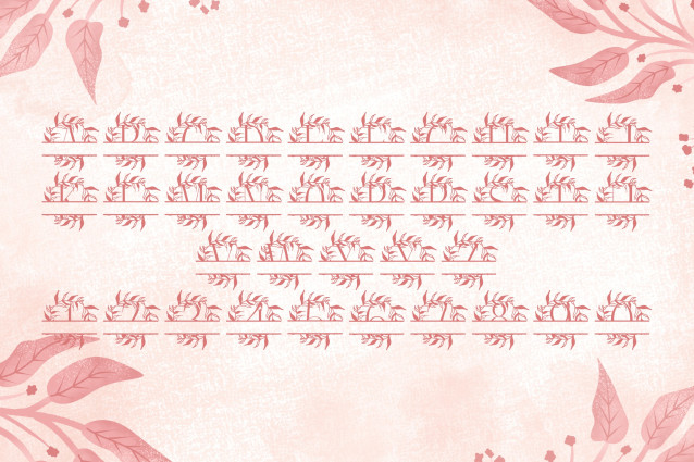 Vine Velvet Split Monogram Font is a refined serif font with a split-letter format, delicately enhanced by flowing vine and leaf illustrations. Each uppercase character is beautifully divided to allow for name or text customization while being wrapped in graceful botanical flourishes. Ideal for elegant weddings, nature-themed branding, and personalized Cricut projects.