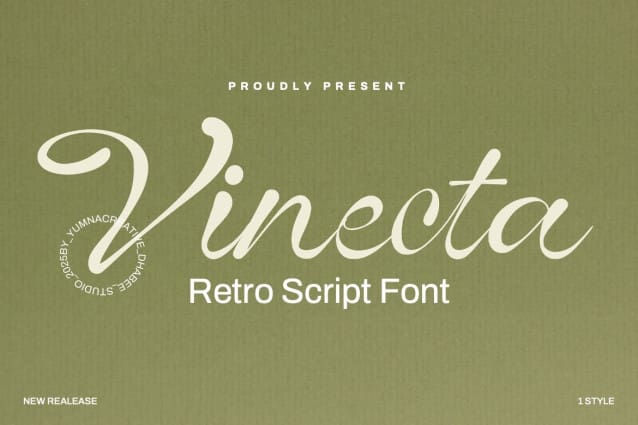 Vinecta Script Font – Retro Script Font. This Font is a delicate, elegant and flowing handwritten font. It has beautiful and well as a unique blend of ligatures a letter, so that the authors compose it with a and little swirly embedding, so that a modern font is formed and ready to make a statement by adding elegant and unique flair to your next design project. Add it to your most creative ideas and notice how it makes them come alive!