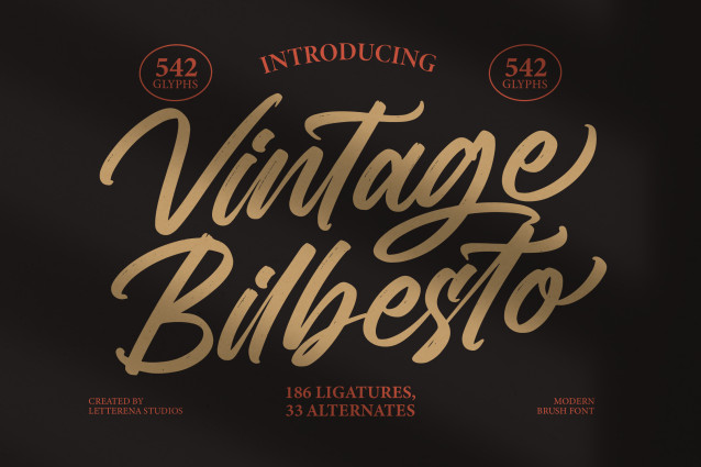 Vintage Bilbesto – Modern Brush Font , from Letterena, is a Luxury Script font, suitable for any projects such as: logos, branding projects, homeware designs, product packaging, mugs, quotes, posters, shopping bags, t-shirts, book covers, name card, invitation cards, greeting cards, label, photography, watermark, special events, and all your other luxury and beautiful projects that need a Luxury Script taste.