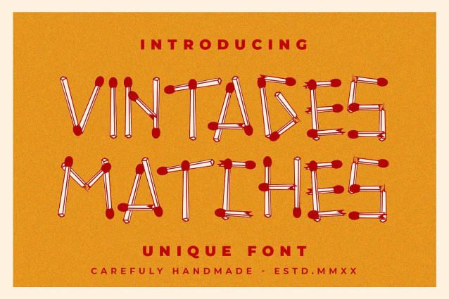 Vintages Matches Font is a matchstick font – Featuring 3D drawn matchsticks that give this display font a playful and distinctly technical feel. Be inspired by its unique charm!