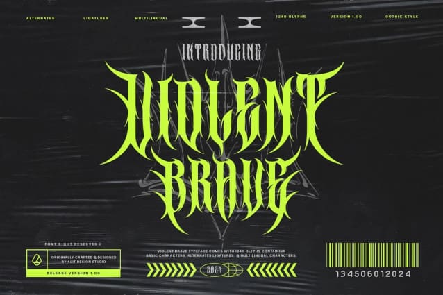 Usage Scenarios: Ideal for graphic designers, musicians, and artists who want to inject a dose of unapologetic boldness into their projects. Whether used in album covers, posters, merchandise, or any other creative endeavor, the Violent Brave Brutalism Typeface is designed to command attention and convey a sense of fearless individuality.