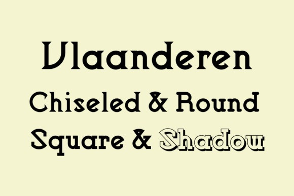 Vlaanderen is an impressive slab serif font family. A curious combination of medieval and modern letterforms, this font comes in four flavors — Chiseled, Square, Round, and Shadow — each with its unique nuances. Add it to your fonts library and use it for various design projects.