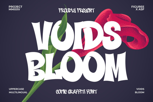 Voids Bloom Font, a vibrant comic graffiti font that fuses bold street art with playful energy. This font is perfect for adding a dynamic and expressive touch to your projects.