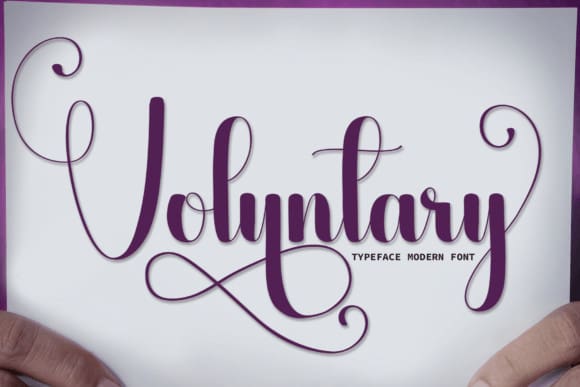 Voluntary Script Font is an elegant handwritten font. Its characters are perfect for wall displays, wedding invitations, social media post logos, advertisements, product packaging, product designs, labels, photography, watermarks, invitations, stationery, and any project that requires and elegant touch.