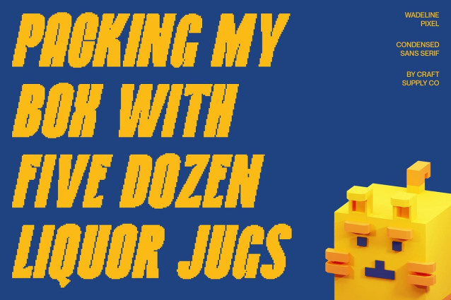 Wadeline Pixel Font – Compact Power with a Digital Edge: Condensed Sans Serif with Pixel Character Bold Impact in Tight Spaces This is designed as a condensed sans serif font that makes every letter count. Its narrow proportions maximize space efficiency while still maintaining strong visual presence, making it ideal for tight layouts, striking headlines, and impactful posters. Pixel Character for Artistic Uniqueness What sets font apart is its pixel-inspired detailing. The subtle block-like texture adds a creative, digital twist to its otherwise modern form. This combination of clarity and artistic personality makes it suitable for projects that need both structure and individuality. Balancing Readability with Boldness Despite its compact design, delivers excellent readability. The clean sans serif structure provides balance against the bold pixel effect, ensuring that the font remains versatile for both professional and experimental applications. Perfect for Branding and Creative Layouts From posters and branding to editorial visuals, thrives in projects that require efficiency and impact. Its condensed shape and pixel artistry bring a fresh, contemporary look to any design, blending modern functionality with digital-inspired creativity. Download Type Speciment: — What you get : – Wadeline Pixel Regular – Wadeline Pixel Outline Features : – Uppercase and lowercase characters – Numerals and Punctuation (OpenType Standard) – Accents (Supports Multilingual Characters) – PUA Encoding — You can use this typeface without needing any specialized software. — If you have any inquiries or need assistance, please feel free to contact us. We appreciate your support in enhancing your creative projects! Best regards, Craft Supply Co.