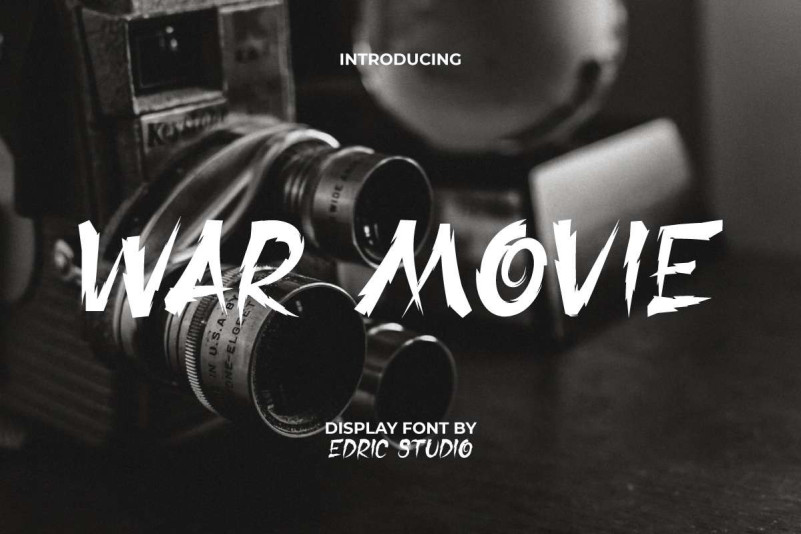 War Movie Display Font is a sharp brush writing display font with special action, sporty and horror themed exclusively designed by EdricStudio. This font is inspired by movies that tell the story of battles and mysteries, creating a unique character that is perfect for any industry, including: accessories, band, barbershop, café, clothing brand, game, movie, photography, printing, publishing, sport, travel, wood carving, and much more.
