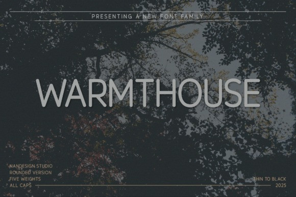 Warmthouse Rounded Font Family is a modern all-caps sans serif font family designed to bring clarity, warmth, and bold personality to your creative projects. With its soft-rounded edges and sleek, geometric construction, this font is both highly legible and aesthetically balanced across five versatile weights: Thin, Light, Regular, Bold, and Black.
