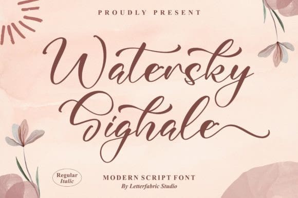 Watersky Sighale Font is a modern styled script font. It is a suitable for any projects such as: logos, branding projects, homeware designs, product packaging, mugs, quotes, posters, and a couple of other creations. This font is PUA encoded which means you can access all of the amazing glyphs and ligatures with ease!