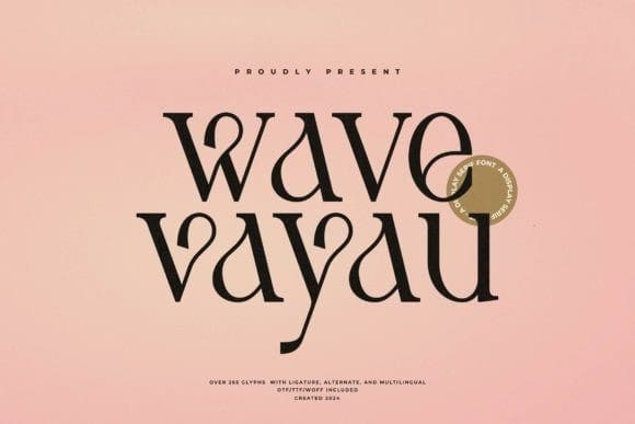 Wave Vayau Font is a display serif font with stylish, bold letters. It has thick lines and sharp edges, giving it a strong and elegant look, perfect for titles, logos, and designs that need to stand out.