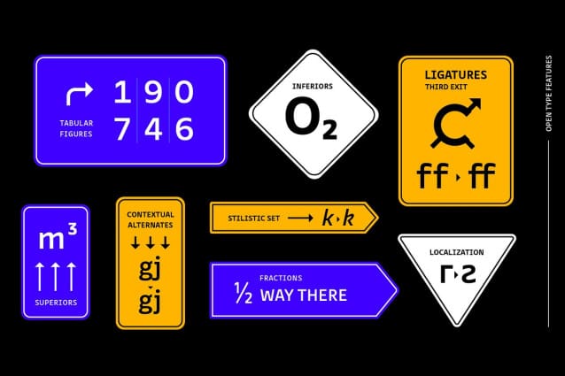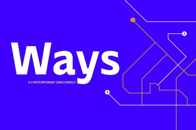 Ways Font Family, born at a crossroads, the collaborative sans family Ways Font is the latest arrival in our portfolio. The name is no coincidence, as Ways pulls out all the stops to bring you excellent legibility. Combined with brutal and elegant details for a distinct humanist flair, this sans offers perfect functionality across all weights. Visual compensations, extra white space, wider apexes, subtle tweaks, and moderate ink traps distinguish Ways among similar typefaces. Use over 690 glyphs, extended Latin and Cyrillic support, extensive OT features set, icon set of more than 60 navigation pictograms, and one variable style, to design full-fledged signage systems that get you from point A to point B without relying on G-Maps.