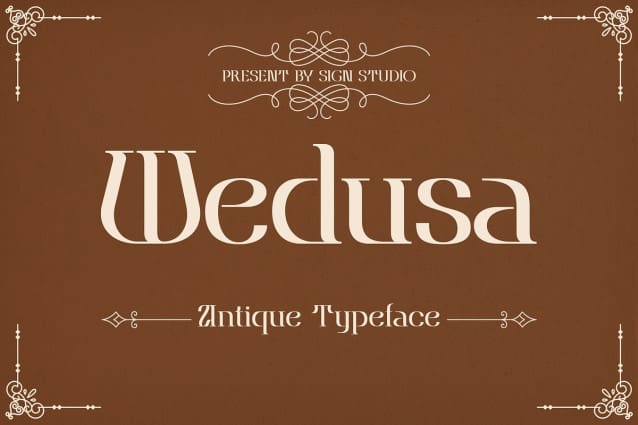Wedusa Font with an antique typeface offers the impression of a classic and elegant design. Inspired by classic and modern calligraphic styles. Can support about 35 languages. Will be a versatile font because writing text using this font is also easy to read.