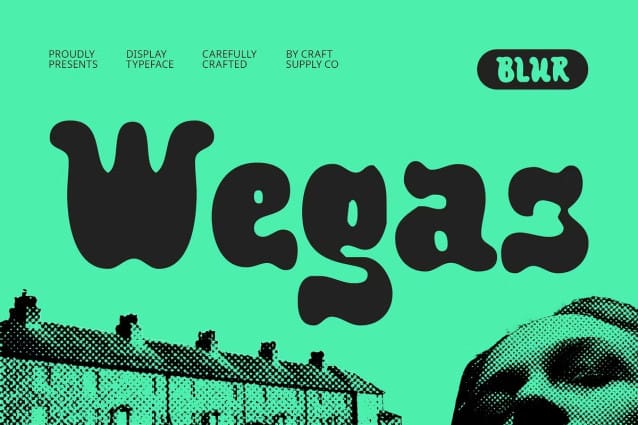 Bold and Playful with a Retro Touch The rounded, puffy characters of Wegas Blur give it an instantly recognizable vintage vibe, reminiscent of the bold graphics and typography seen in 90s music, fashion, and advertising. The font’s robust thickness ensures a confident presence, while its playful, bubbly design captures a sense of youthful exuberance.