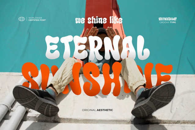 Wetnessday Display Font – This type is inspired by 70’s typefaces with psychedelic touches and groovy vibes. Wetnessday has a bold and wavy font with expressive curves, so it looks playful and fun. This type is very suitable for making a poster, magazine layout, brand logo, sleeve cover, party flyer, quotes, or simply as a stylish text overlay to any background image.