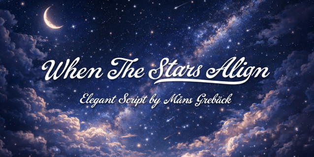 When The Stars Align Font is an elegant script with a calm, luminous presence.Its letterforms flow smoothly, with gentle contrast and carefully shaped curves that give the text a sense of balance and intention. The rhythm is unhurried, allowing words to breathe while still feeling connected and deliberate. Subtle swashes and soft joins add character without drawing attention away from the message.