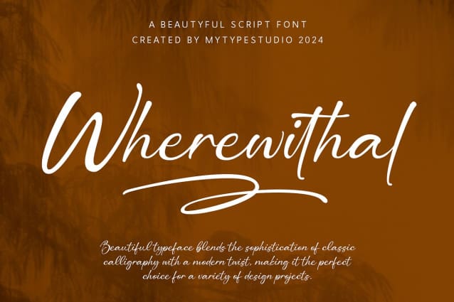 Wherewithal Script Font, a stunning script font meticulously crafted by Mytype Studio. This beautiful typeface blends the sophistication of classic calligraphy with a modern twist, making it the perfect choice for a variety of design projects.