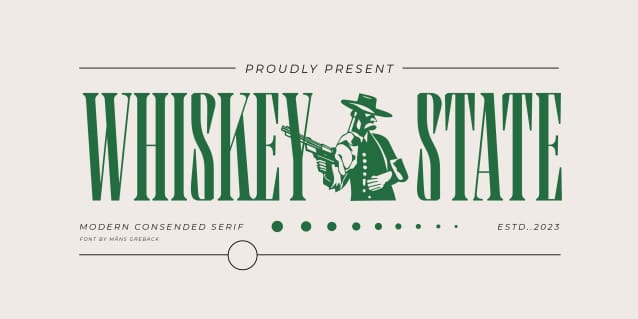 Whiskey State Font strides onto the canvas like a cowboy entering a saloon: Tall, confident, and impossible to ignore. Every letter stands upright and proud, imbued with the spirit of the Old West, with contemporary stylistic touch.