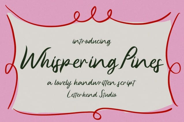 This font is made for personal use. Get the full version of the fonts if you want to use it for commercial purposes by purchasing the licenses here: https://creativemarket.com/Letterhend/290813166-Whispering-Pines-Handwritten-Script?u=fontlot123