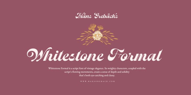 Whitestone Formal Font is a script font of vintage elegance. Its weighty characters create a sense of depth and solidity that’s both eye-catching and classy.