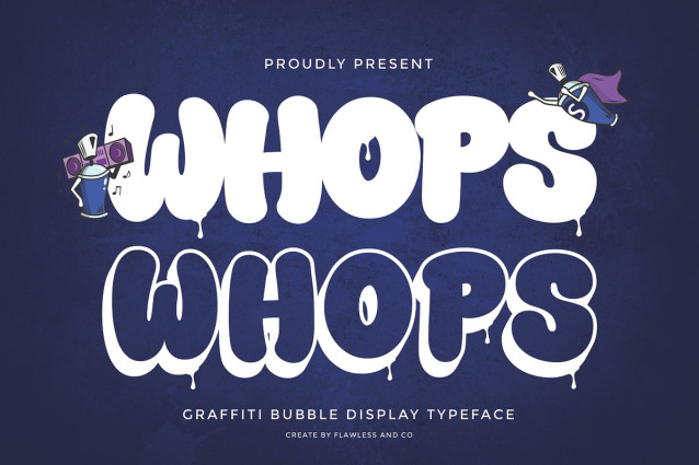 This font is used only for demos (Demo license). If you want to use this font for commercial use please contact: https://creativemarket.com/Flawlessandco/291861921-Whops-Graffiti-Bubble-Font?u=fontlot123