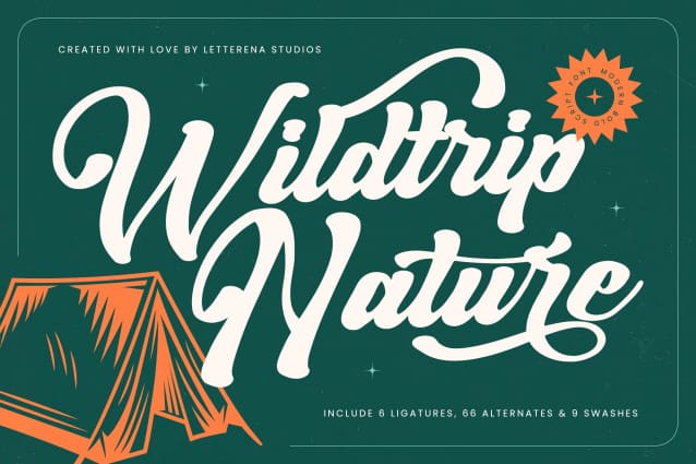 – Here is the link to purchase full version and commercial license: https://letterena.com/product/wildtrip-nature-modern-bold-script/