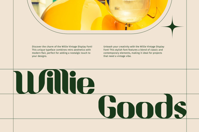 Willie Font, a stunning display font that captures the timeless elegance of vintage design. Its unique, flowing letterforms evoke a sense of nostalgia, making it perfect for projects that demand a touch of retro charm and sophistication. Whether you’re designing posters, creating memorable logos, or crafting branding for a classic-inspired business, Willie adds a distinctive personality that stands out. The font’s bold curves and graceful lines are a tribute to a bygone era of adventure and style. Let Willie transport your audience and give your designs an unforgettable, classic feel.