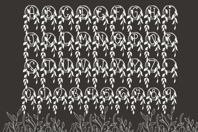 This font is used only for demos (Demo license). If you want to use this font for commercial use please contact: https://dmletterstudio.com/product/willow-vine-monogram/
