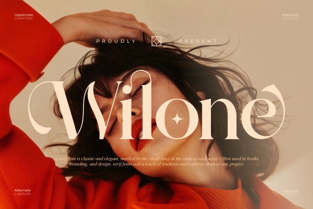 Wilone Serif is a modern and classy font type for all branding and logo designs. This modern and classy Serif font has a beautiful character. This font is suitable for invitation card designs, cool logos, movie titles, movie names, business cards, book titles, brand names, and various other designs. Wilone Serif is a smooth serif font that exudes sophistication and the moment. Its stylish ligatures make this font a perfect partner for any project.