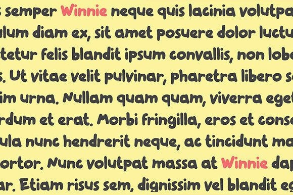 Winnie Font – the font that artistically echoes the delightful enchantment of cherished childhood tales. Its design is lovingly reminiscent of familiar faces and treasured narratives steeped in imagination and wonder. Winnie effortlessly encapsulates an inviting and amiable aura, bearing the round, plush, and soft qualities akin to its inspiratory namesake. As your eyes dance over the cheerful curves of this pleasantly plump typeface, you can almost hear the dulcet notes of heart-warming nostalgia.