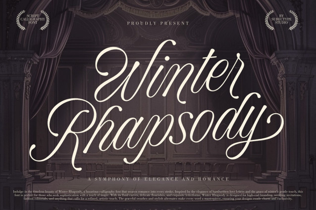 Winter Rhapsody is a Chic calligraphy font, described by an Love touch, perfect for Wedding party, invitation, Signature brand, and all of project with beautiful calligraphy font. Fall in love with its incredibly distinct and timeless style and use it to create spectacular designs!