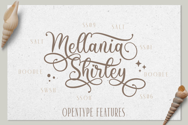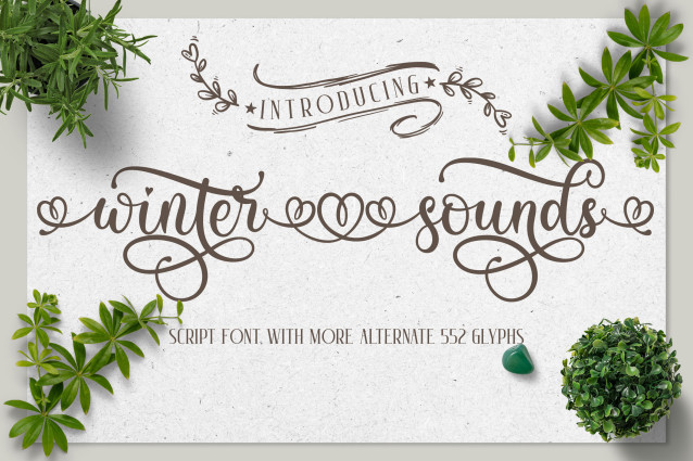 Winter Sounds script with many alternate character ,Winter SoundsSerif ( regular n Italic ), WinterSounds High Serif ( regular n Italic ) ,Winter Sound Monogram and extra doodles included . Winter Soundis suitable for various products such as invitations, chrismast, winter, summer, spring, valentine day,product packaging, quotes, product design, crafter, labels, photography, watermarks, logos, branding and other romantic projects..Everything can be accessed using software that supports Opentype, such as Adobe Indesign, Adobe CS Illustrator, Adobe Photoshop CC, and Corel Draw.