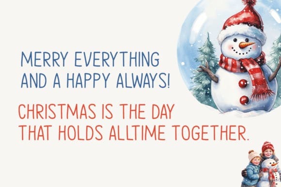 Wintery Christmas Font is a font that embodies the spirit of the season with its sweet and approachable handwritten style. Its versatility ensures it’s a perfect fit for a diverse range of design projects, limited only by your imagination.