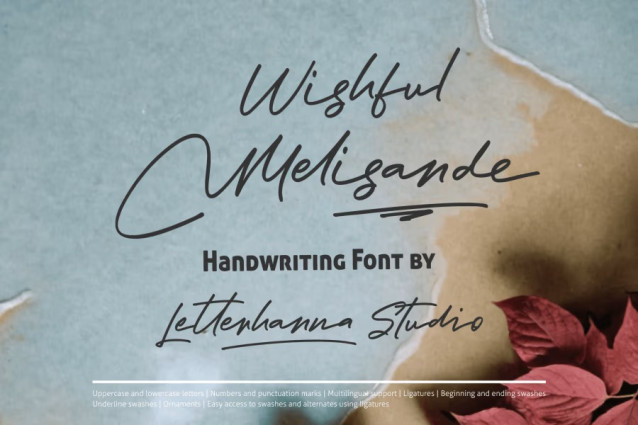 Wishful Melisande Handwriting Font a graceful and enchanting handwriting script font that captures the beauty of fluid strokes and delicate curves. Designed for those who appreciate elegance, this font blends natural hand-drawn charm with a touch of sophistication, making it perfect for branding, invitations, and artistic projects.