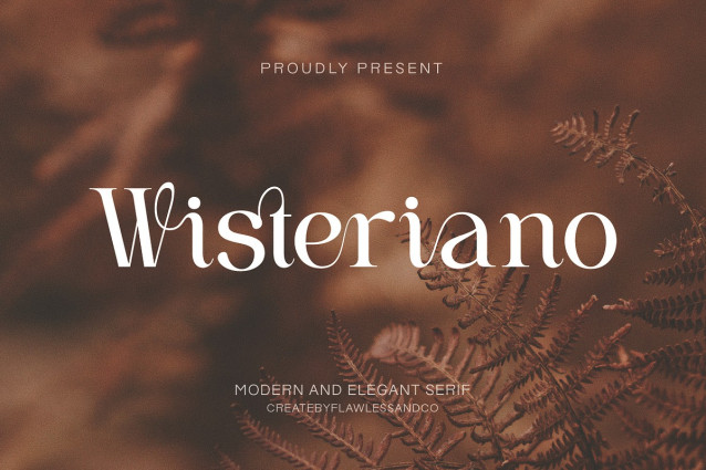 Wisteriano Font is a modern and elegant serif font that blends timeless sophistication with a contemporary feel. Featuring graceful curves and refined details, this typeface is perfect for branding, wedding invitations, editorial layouts, luxury packaging, and high-end fashion designs. Wisteriano adds a touch of class and beauty to any project that calls for a polished and stylish presentation.