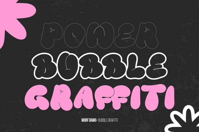 Woof Dawg Font | Bubble Graffiti, from Denustudios, suitable for any projects such as: logos, branding projects, homeware designs, product packaging, mugs, quotes, posters, shopping bags, t-shirts, book covers, name card, invitation cards, greeting cards, label, photography, watermark, special events, and all your other lovely projects that need a Bubble Graffiti taste.