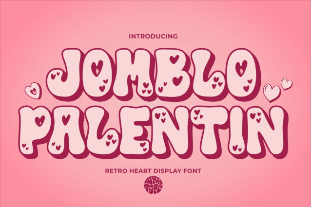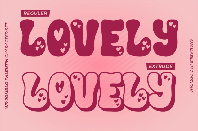WR Jomblo Palentin is a bold display font with a playful twist—featuring heart-shaped details in every character. Available in two styles, Regular & Extrude, it’s perfect for romantic designs, posters, branding, and any project that needs a touch of love and charm.