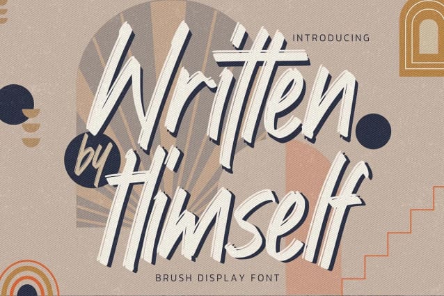 Written by Himself Font is a cool and paint brushed display font. This font reads as strong, confident, and dynamic and can add tons of stylish character to your designs.
