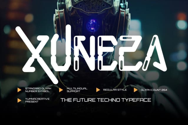 Xuneza Futuristic Font is used only for demos (Demo license). If you want to use this font for commercial use please contact: https://creativemarket.com/habibie.habibie1532/92522073-Xuneza-Futuristic-Font?u=fontlot123