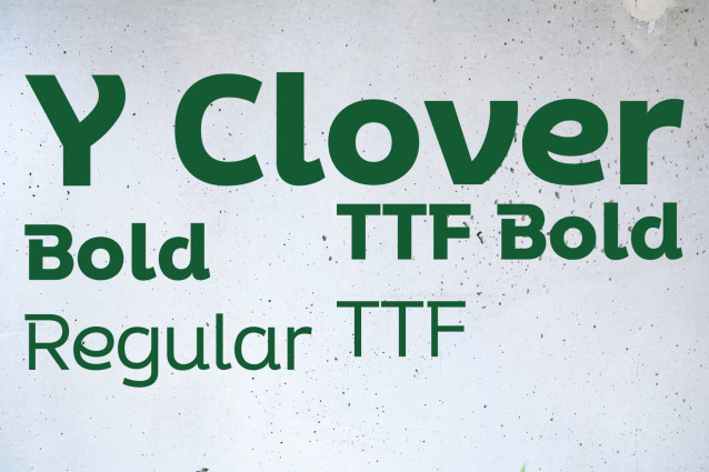 Y Clover Font Family: The design concept of Y Clover is inspired by the shape of a four-leaf clover. This motif is integrated into character components, creating a unique look with a bouncy charm from its curved strokes. It features resilient curved strokes in initial Korean consonants like ㄱ, ㄴ, ㄷ, and ㅅ to suggest active writing. The four-leaf clover shape is also playfully included in the vowels ㅗ, ㅜ and the internal space of consonants ㅂ, ㅍ.